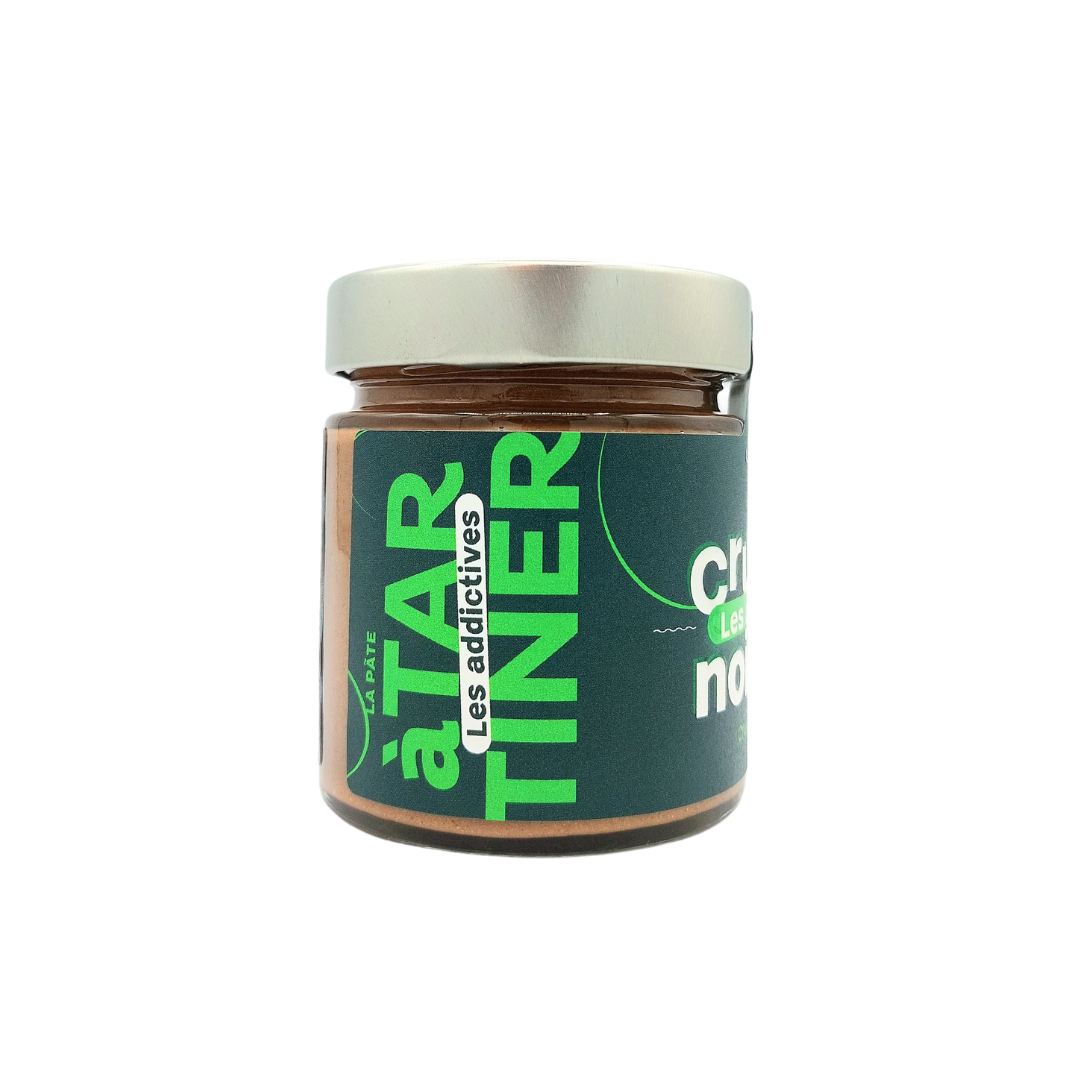 Ingrédients : noisettes, saccharose, huiles de tournesol et colza, poudre de lait entier, beurre de cacao, pâte de cacao, cacao en poudre, sel de Guérande, lécithine de tournesol